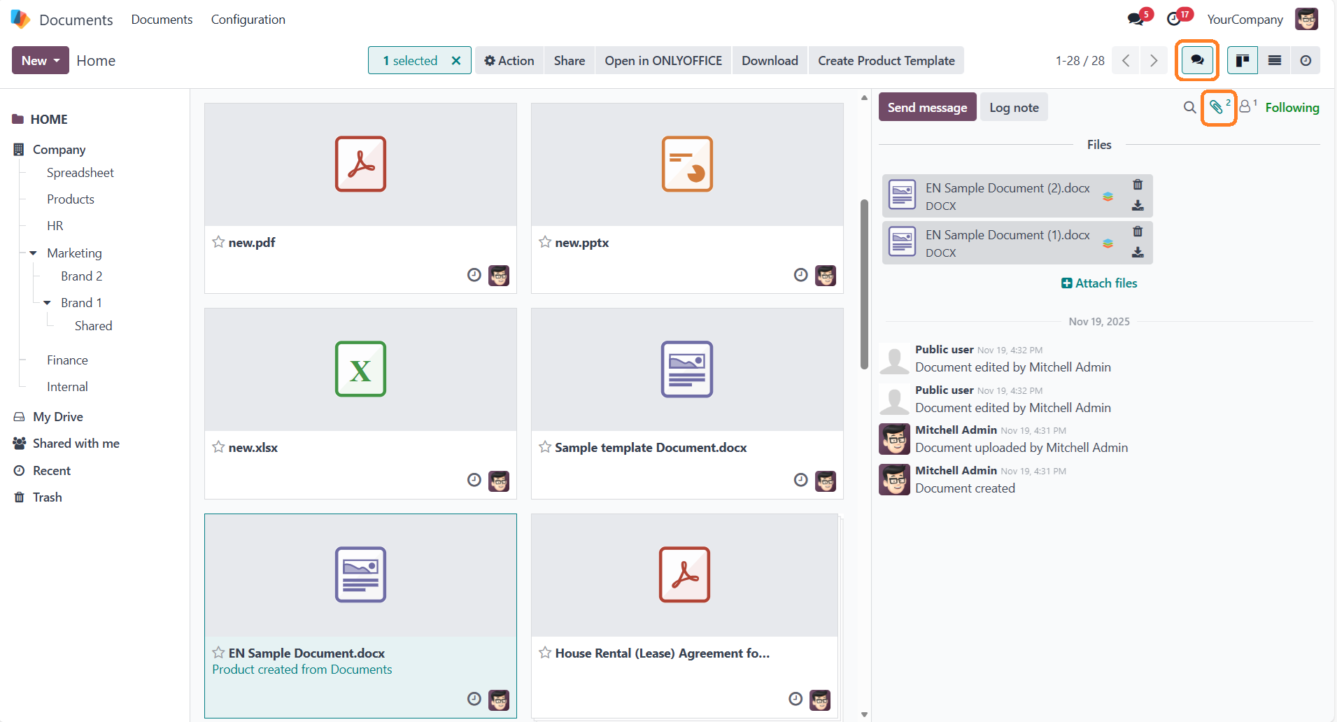 现在,用户可直接通过共享链接在 ONLYOFFICE 编辑器中打开文档进行查看。这大幅简化了与外部用户及合作伙伴的协作流程——无需授予对方 Odoo 系统的完整访问权限,即可共享文档访问权。