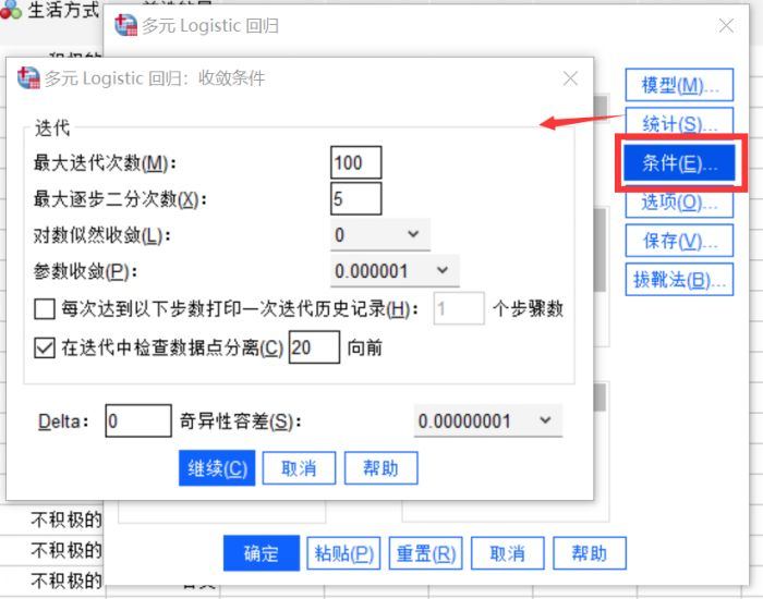 最大迭代数是数据进行回归分析时可进行迭代的次数,这个数值必须是大于或小于100的整数,最大步骤对分设置的是迭代时的等分数,系统默认是5。