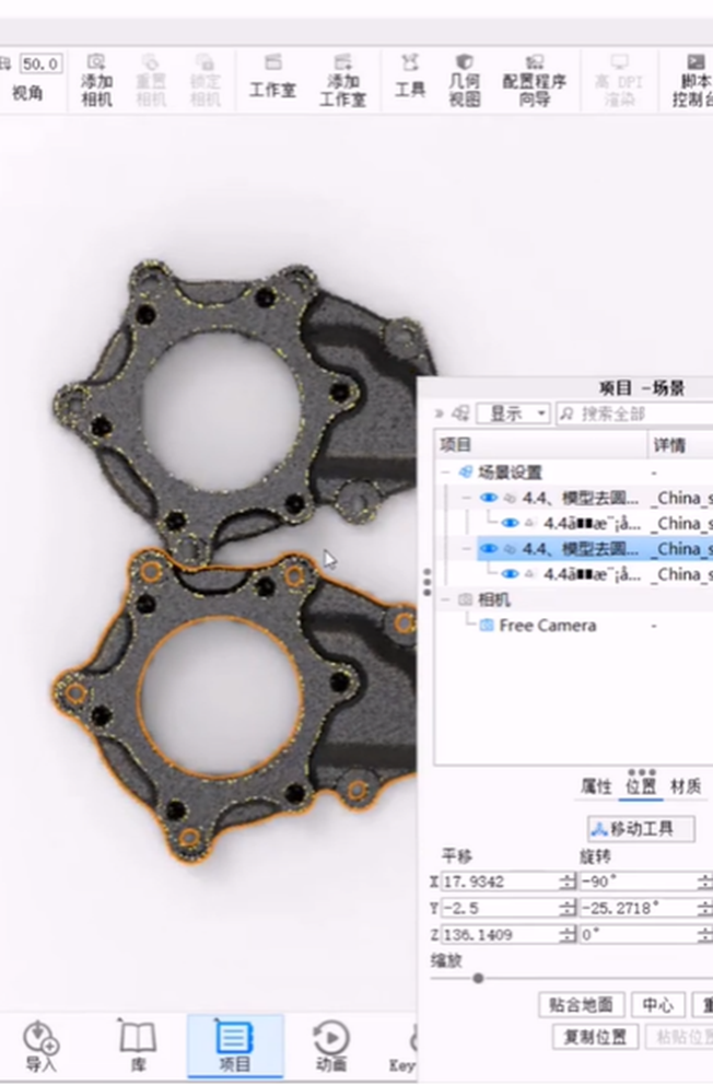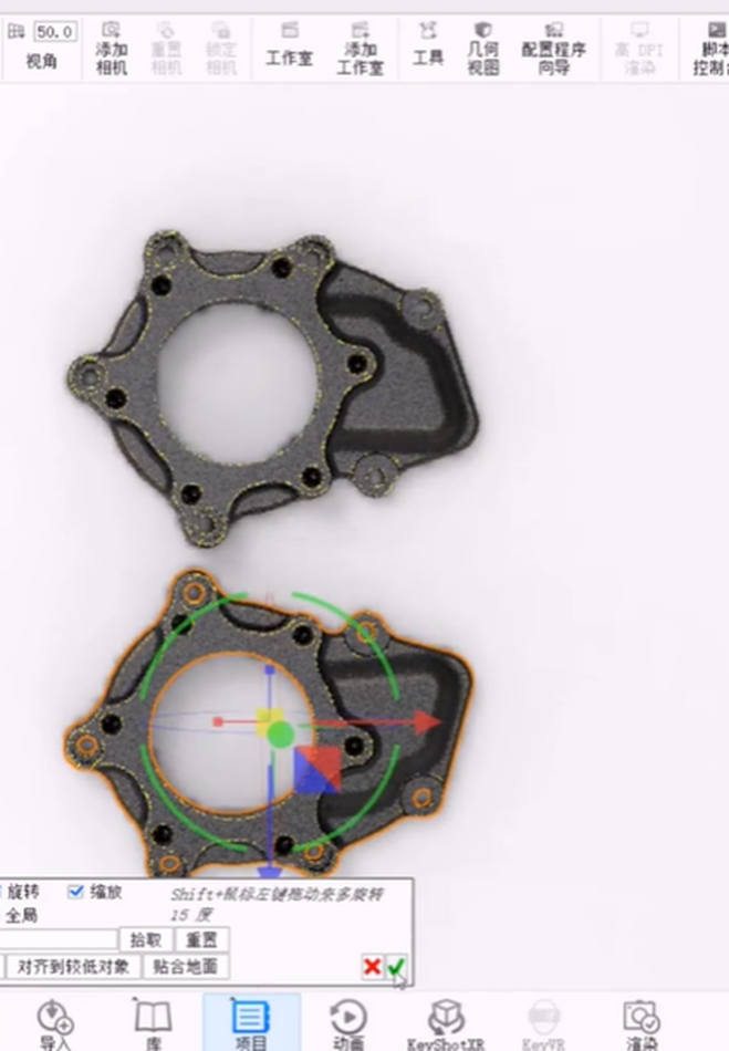 1. 选择模型:首先,将模型导入Keyshot中,然后在场景中选择你想要镜像的模型部件。