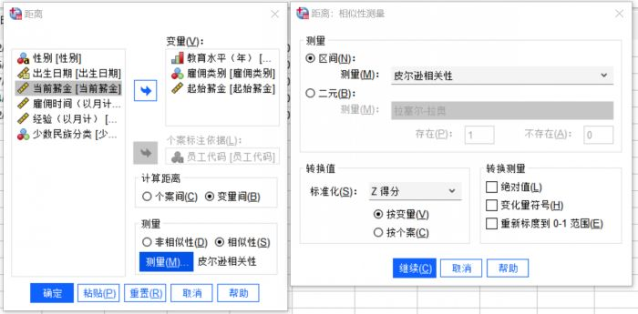 同样使用上述样本,如果我们要更为精确地探讨起始薪金和教育水平的相关性,可以将其余变量都视作干扰变量全部剔除,分析设置如上图。
